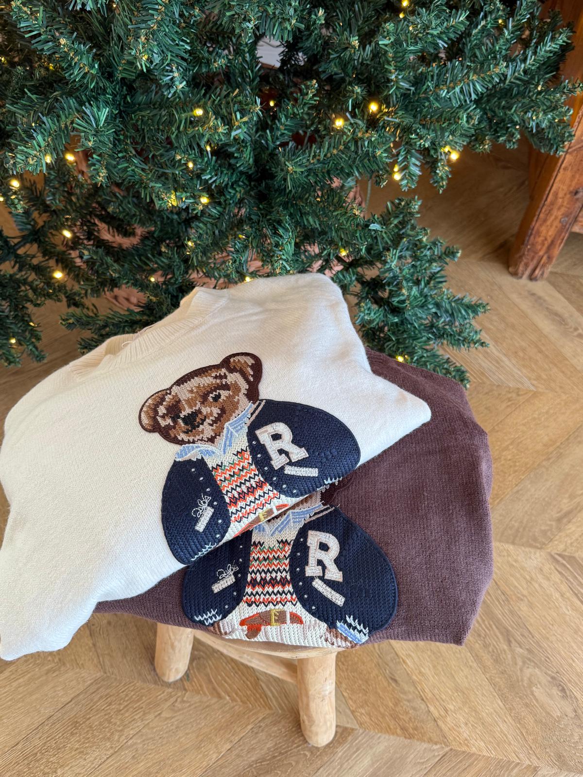 Pull marron avec ourson